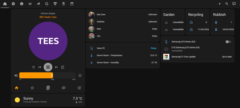 Ive used Home Assistant for years, and its improved a lot since I first started. It gives me a fancy dashboard I can use when I’m at my desk, and it does a lot of automating for me;